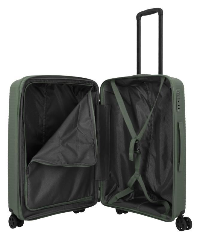 Kufry velikostí M a L jsou vybaveny integrovaným TSA zámkem, který zajišťuje bezpečnost obsahu a umožňuje bezproblémové cestování do zemí, kde je tento standard vyžadován. Pro lepší organizaci věcí slouží oboustranný balicí systém s přepážkou a kompresními popruhy, které pomáhají udržet obsah pevně na místě a zabraňují jeho přemísťování během přepravy.