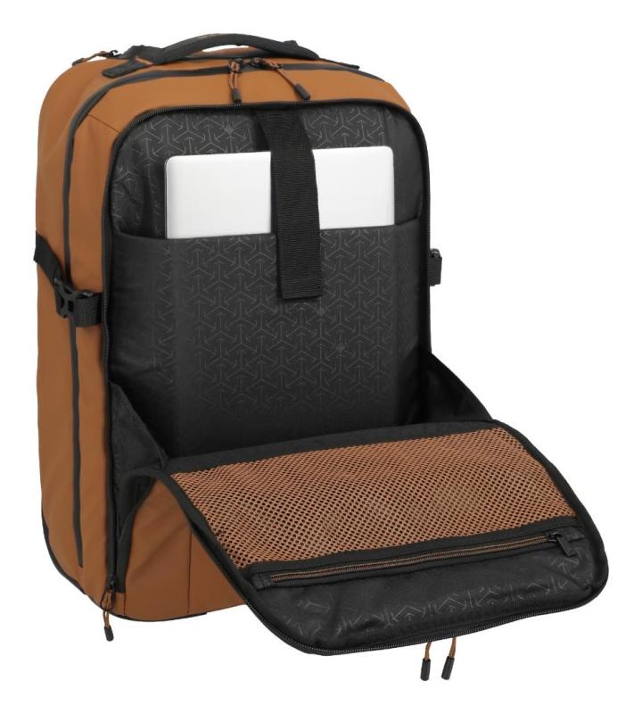 Batoh je vybaven dvěma velkými kolečky s integrovaným krytem, které chrání před poškozením při nošení na zádech. Polstrovaná kapsa pojme notebook až do velikosti 15,6" (34 cm), takže je ideální pro pracovní cesty nebo studium.