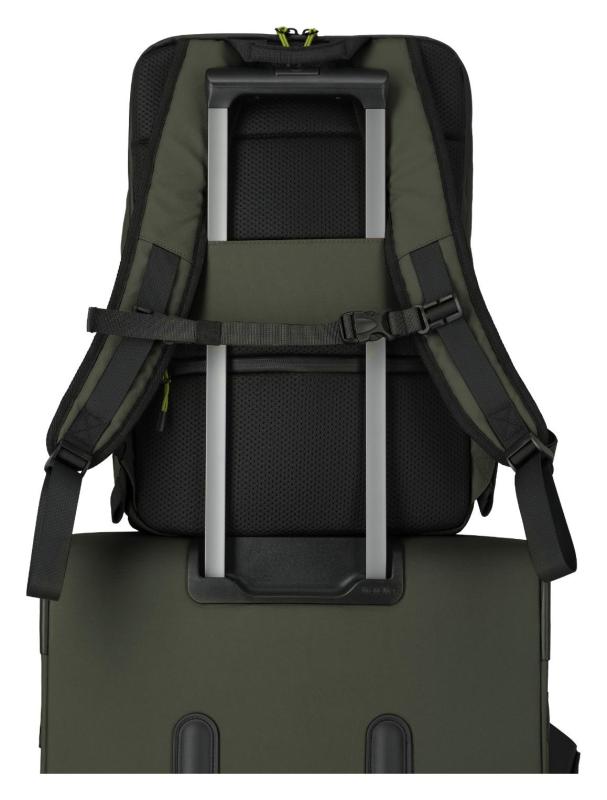 Praktickou vychytávkou je průvlek na zadní straně, který umožňuje snadné nasazení batohu na rukojeť kufru, což oceníte při cestování na letišti nebo nádraží.