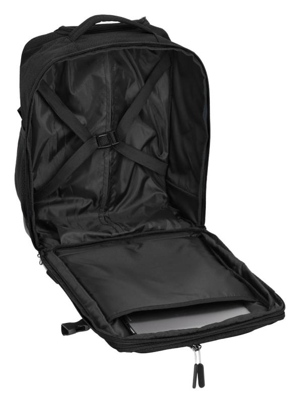 Polstrovaná přihrádka pojme tablet nebo notebook až do velikosti 15,6" a ochrání je před poškozením. Materiál batohu je odolný a dobře omyvatelný, což zajistí dlouhou životnost i při častém používání. Boční stahovací popruhy umožňují redukci objemu, pokud je batoh méně naplněný. Vrchní madlo a průvlek na rukojeť cestovního kufru usnadňují manipulaci a kombinaci s dalším zavazadlem.