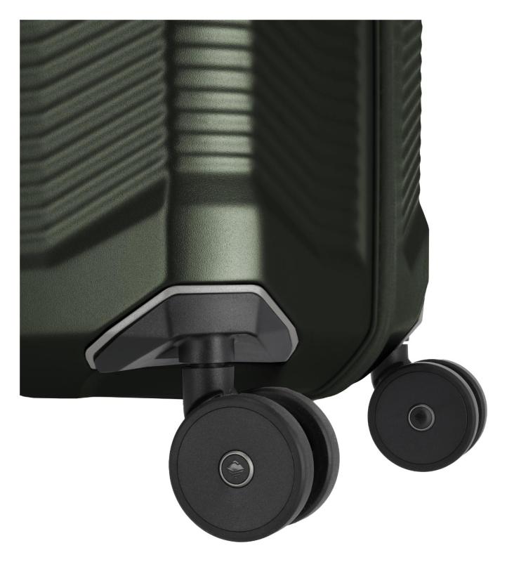 Kufr disponuje čtyřmi kvalitními dvoukolečky s kuličkovými ložisky, která se otáčí o 360°, což zajišťuje snadnou manipulaci a plynulý pohyb v jakémkoliv směru. Výsuvná rukojeť s aretací umožňuje přizpůsobení výšky pro pohodlné tažení. Pro rychlé navýšení prostoru je kufr vybaven expandérem, který zvětší jeho objem z 69 na 76 litrů.