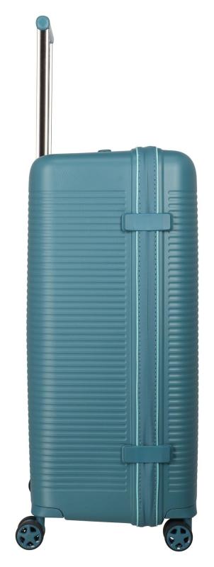 Kufr je vybaven čtyřmi tichými dvoukolečky otočnými o 360°, která mají rozvor proti překlápění, což zlepšuje stabilitu a manipulaci. Kovová výsuvná rukojeť s aretací umožňuje nastavení výšky podle potřeby a zvyšuje komfort při tažení.