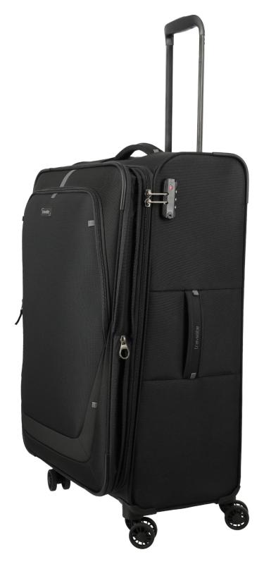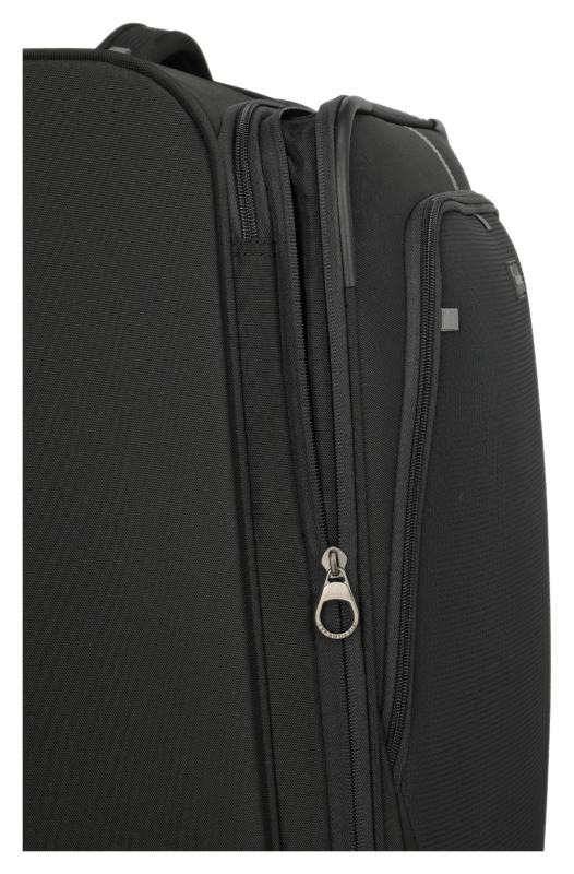 Velký textilní kufr je vybaven čtyřmi dvoukolečky otočnými o 360°, která zajišťují snadnou manipulaci a plynulý pohyb ve všech směrech. Díky lehké výsuvné rukojeti s aretací pohodlně upravíte délku podle potřeby a usnadníte si tak přenášení zavazadla. Integrovaný TSA zámek poskytuje bezpečnost a umožňuje pohodlné cestování i do zemí s přísnějšími bezpečnostními kontrolami.