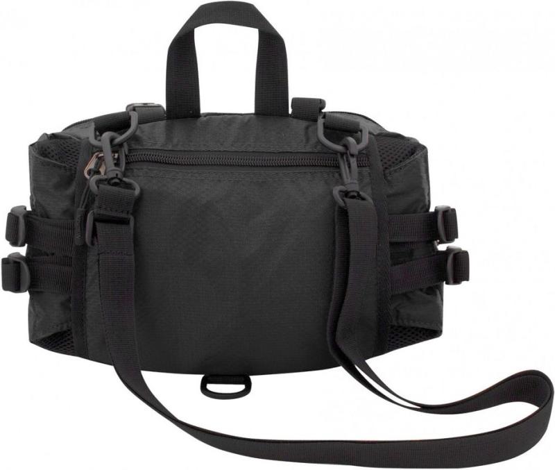 Polstrovaný zadní panel zvyšuje komfort při nošení a zároveň zlepšuje ventilaci. Ledvinka je vybavena bederním popruhem o šířce 40 mm, který zajišťuje pevné a pohodlné upevnění kolem pasu. Navíc je součástí i odnímatelný ramenní popruh, díky kterému lze ledvinku nosit i přes rameno, což zvyšuje variabilitu použití.