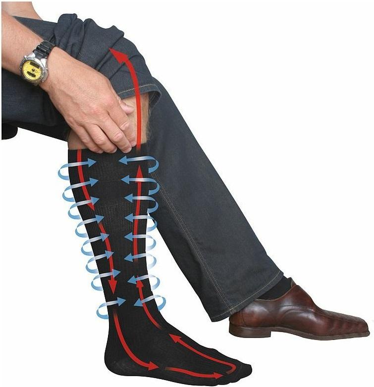 -pomáhajú prevencii opuchnutých nôh a členkov, trombózy hlbokých žíl (DVT) a stimulujú cirkuláciu krvi počas dlhej cesty