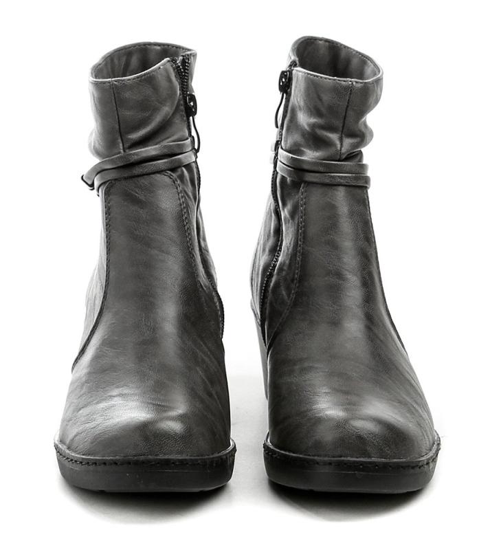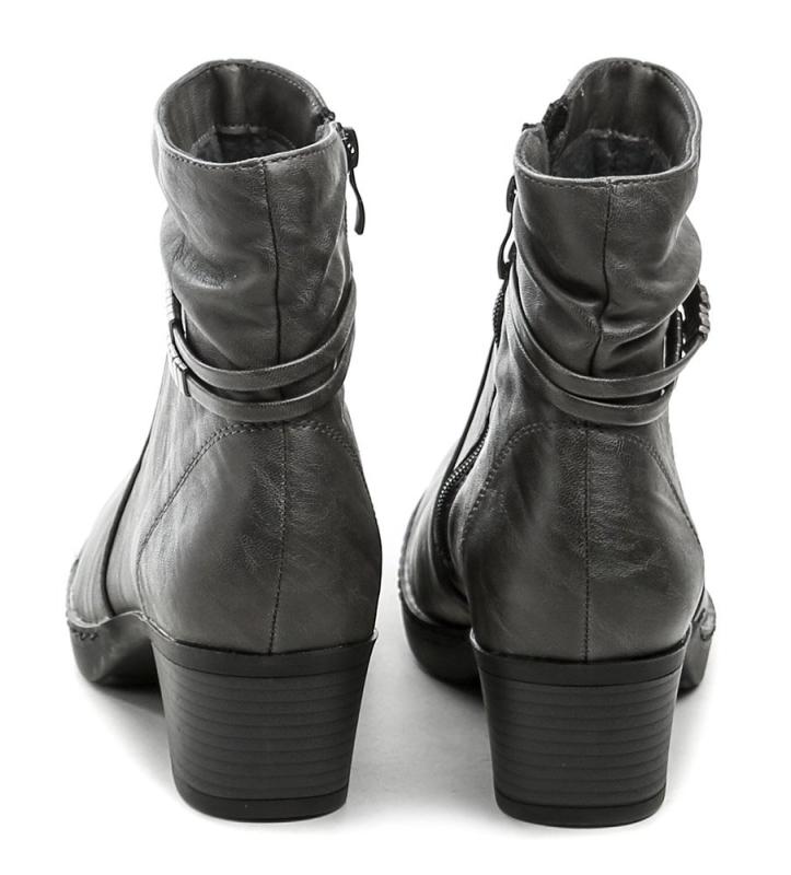Tato dámská zimní vycházková obuv kombinuje pohodlí s elegantním vzhledem díky podpatku vysokému 5 cm a praktickému zapínání na zip, které usnadňuje obouvání i zouvání.