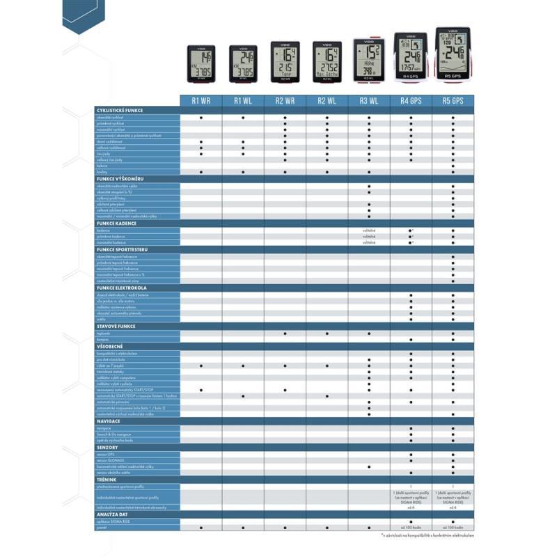 Extra velký displej, snadné ovládání a více než 34 funkcí: GPS computer řady R spolehlivě zobrazuje všechna relevantní jízdní data, která výkonnostní i závodní jezdci vyžadují. Kromě zobrazení rychlosti, ujeté vzdálenosti a času jízdy či tréninku poskytuje tento chytrý computer také navigační funkce a lze jej spárovat s kompatibilními elektrokoly. Skutečným vrcholem je integrované barometrické měření nadmořské výšky. Vysoce kontrastní displej je díky úhlopříčce 2,4 palce a mimořádně velkým číslicím velmi dobře čitelný i za jízdy. Zvýrazněný modrý čtverec v pravé horní části displeje umožňuje nový způsob zobrazení tréninkových dat. V kombinaci s aplikací SIGMA RIDE pro chytré telefony lze pomocí několika kliknutí nastavit až šest individuálních tréninkových zobrazení. VDO R5 GPS se montuje na řídítka pomocí předsazeného držáku (součástí balení), takže computer je umístěn centrálně nad představcem. Držák pasuje na řídítka o průměru 31,8 až 35 mm. Pokud byste chtěli zjistit ještě více dat nebo vám záleží na maximální přesnosti vašich hodnot, můžete díky konektivitě ANT+ a BLE (Bluetooth Low Energy) k computer připojit i externí snímače pro měření rychlosti, srdeční frekvence nebo kadence šlapání.