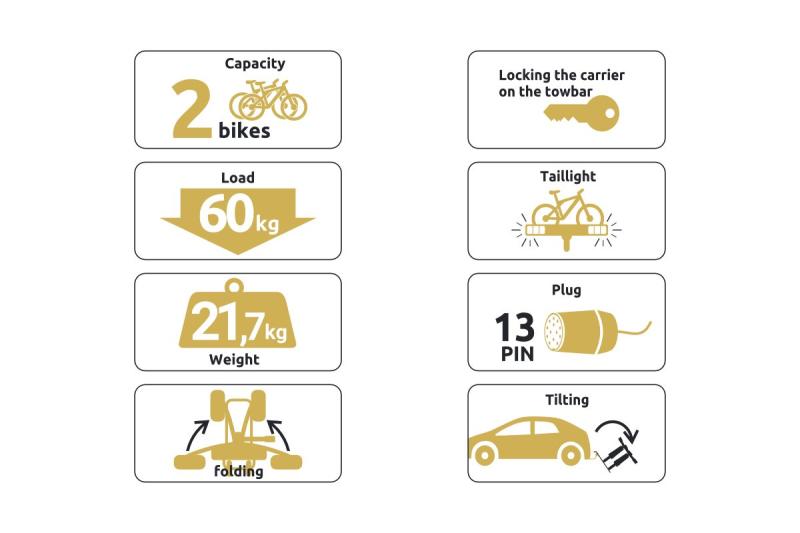 • Maximální počet jízdních kol: 2 kola
