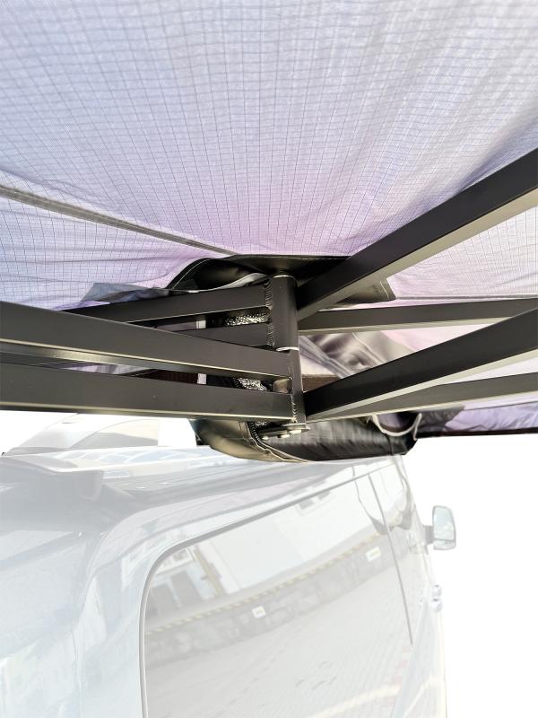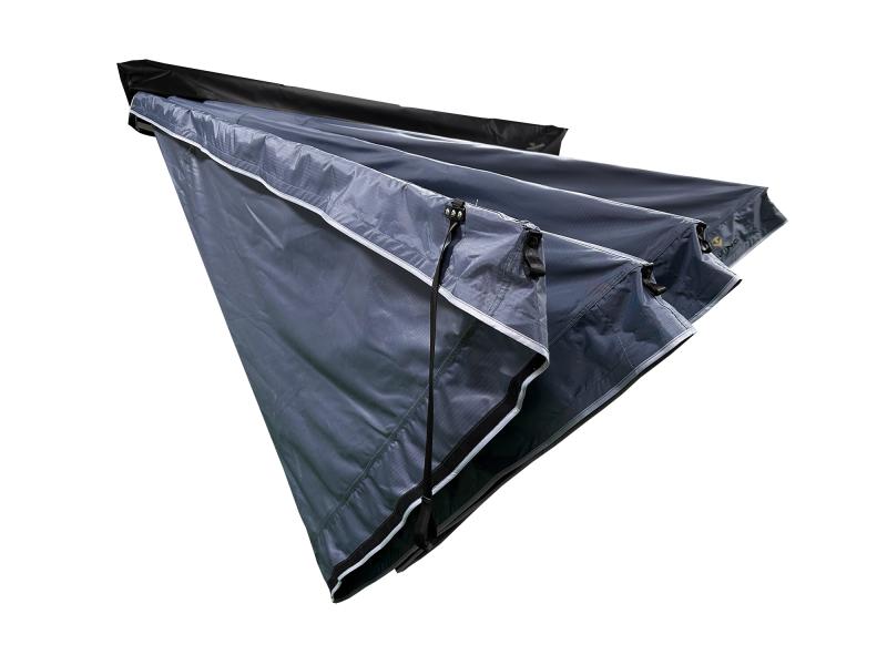 Markýza se snadno připevňuje na lyžiny nebo nosiče vozidel jako jsou SUV, off-roady či dodávky. Její rozměry ve složeném stavu jsou 267 × 18,5 × 19,5 cm, hmotnost 26 kg ji činí přenosnou a vhodnou pro různé typy cestování. Díky skládací konstrukci ji během chvíle rozložíte a připravíte k použití.