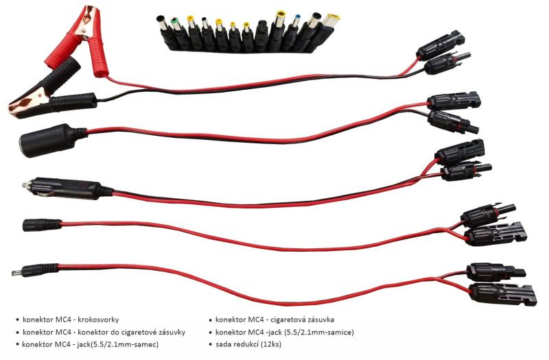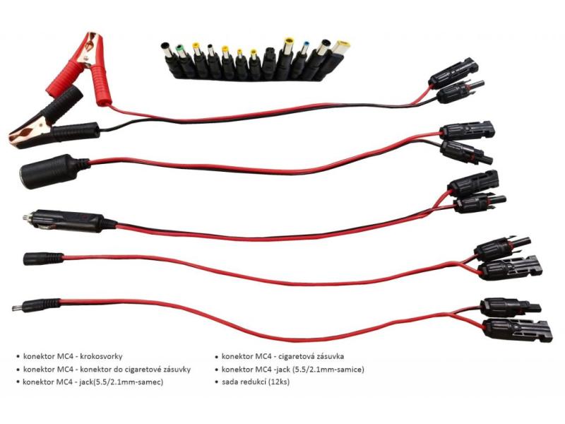 Pomocí vhodných redukcí je možné napájet také powerbanky, čelovky, fotoaparáty, kamery, baterky, drony, kompresory, cestovní chladničky, notebooky, televizory nebo počítače. To výrazně rozšiřuje možnosti využití tohoto panelu.