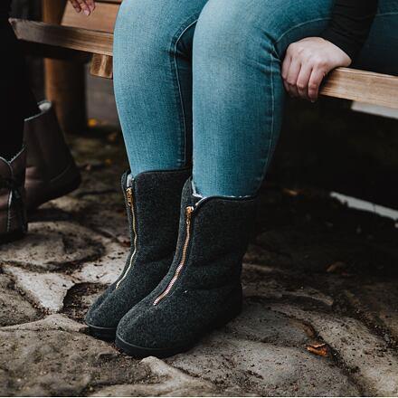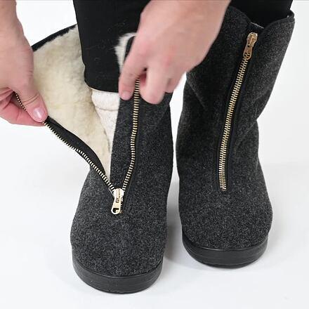 Vlnka Dámske papuče z ovčej vlny na zips čier...