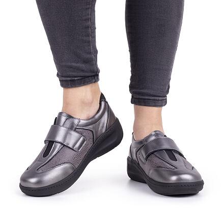 Vlnka Dámské kožené polobotky na suchý zip Dagmar šedá obuv dospělé + doprava zdarma