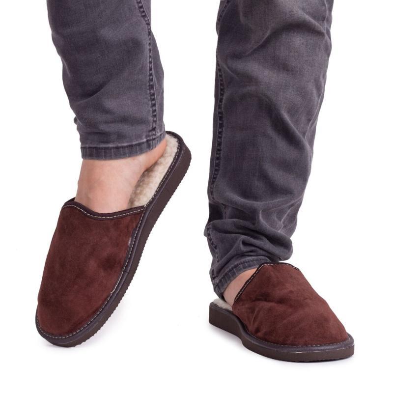 Dodanie produktu Vlnka pánské kožené pantofle s ovčí vlnou - tmavě hnědá POUZE EU 49 (VÝPRODEJ)