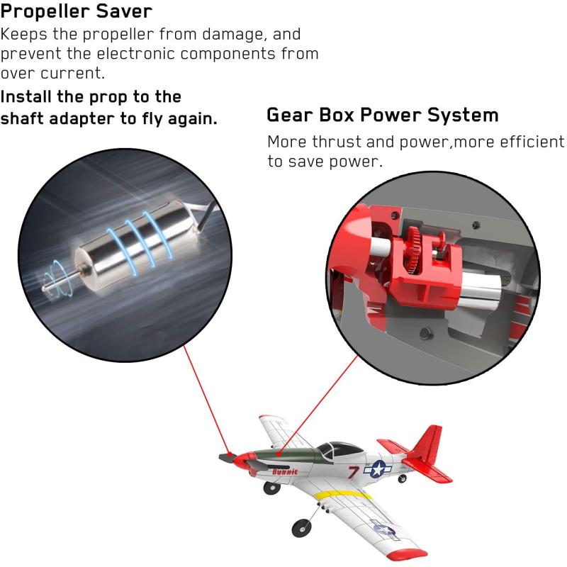 Použití frekvence 2,4 GHz a ovládání na 4,5 kanálech umožňuje přesné řízení a dosah až 200 metrů, což je dostačující pro bezpečné létání v otevřeném prostoru. Model je vyroben z lehkého a odolného materiálu EPP, který odolá nárazům a snadno se opravuje vteřinovým lepidlem určeným pro RC modely.
