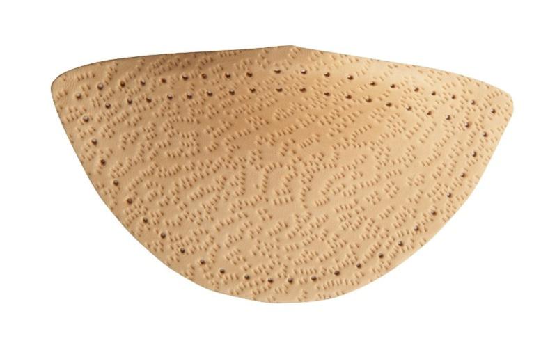 Výlisek zhotovený z lehčené pryže v kombinaci s přírodní usní je určen k vlepení do sériově vyráběné obuvi, kde doplňuje nedostatečné anatomické tvarování pod podélnou klenbou nohy. K umístění v obuvi je opatřena samolepící vrstvou.
