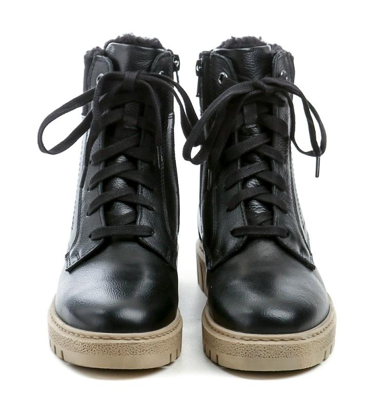 Zimní dámské boty z pravé kůže s teplou textilní podšívkou, šněrováním a zipem pro snadné obouvání. Výška 17 cm, podpatek 3 cm, hmotnost 930 g.Tyto dámské zimní boty jsou navrženy pro pohodlné nošení během chladných dnů, kdy oceníte kombinaci praktičnosti a komfortu.