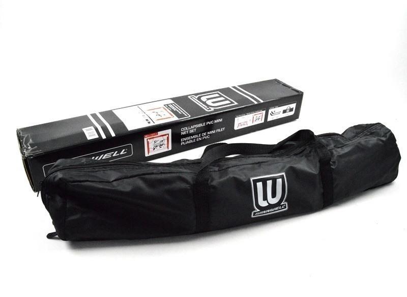 Součástí balení je malá hokejová branka s plastovou konstrukcí, 2 plastové mini hokejky, pěnový míček, plachta simulující brankáře a přenosný vak. Branka je nejmenší z modelů WinWell. Díky praktickým rozměrům set snadno přenesete a zároveň jej můžete využívat v domě i na zahradě.