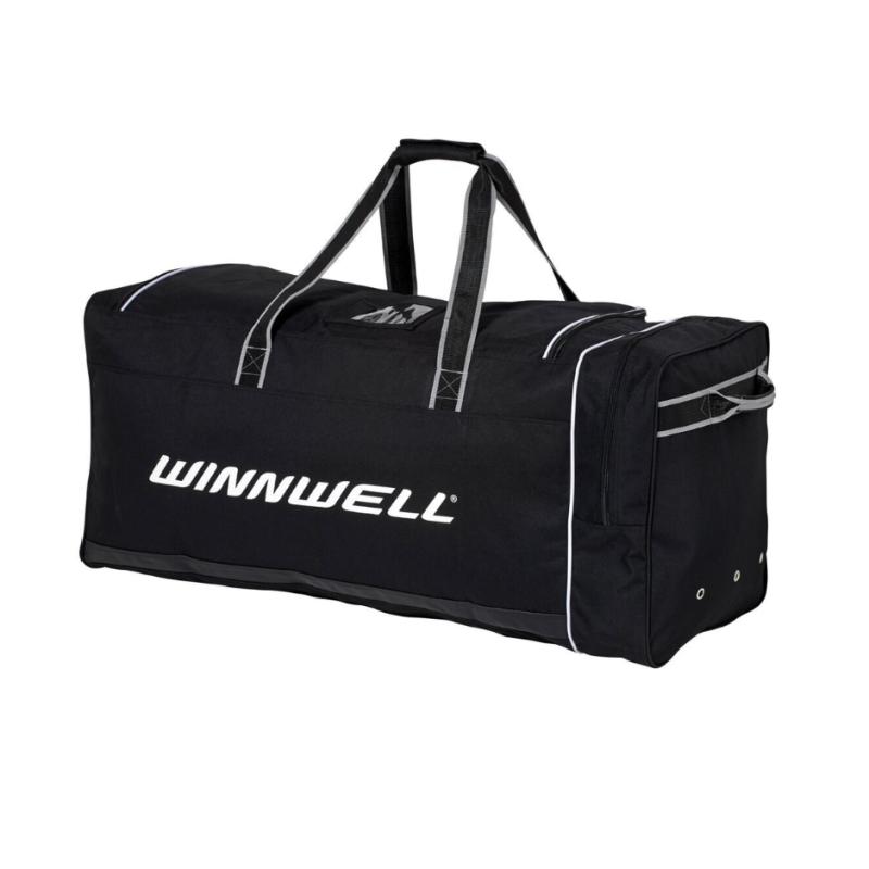 Taška Winnwell Premium Carry Bag kvalitní hokejová taška bez koleček přes rameno, kterou můžete využít i jako klasickou cestovní tašku.Kvalitní taška z odolného materiálu (polyesteru), která má pevné popruhy, dvojitý zip, boční kapsy a vnitřní kapsu tvořenou PVC tkaninou. Velká vnější kapsa umožňuje uložení věcí do samostatného prostoru. Dvě boční kapsy jsou určeny pro uložení bruslí. Další dvě oddělené kapsy jsou na každém konci tašky. Možnost nosit tašku klasicky v ruce pomocí zesílených nastavitelných úchytů.