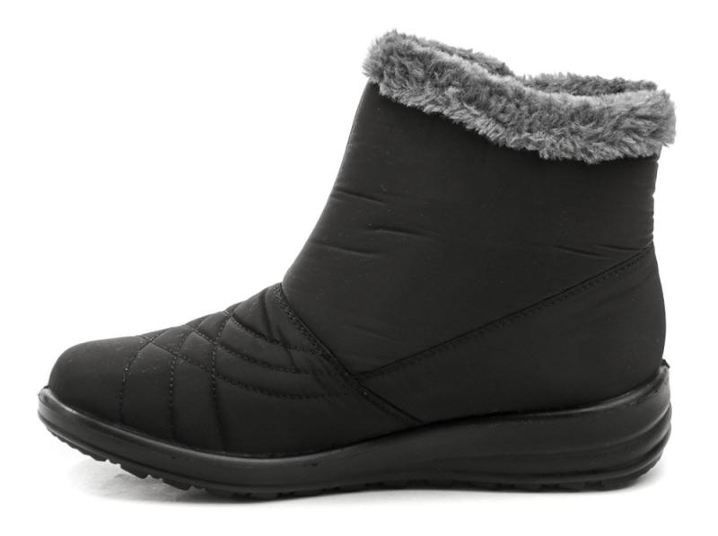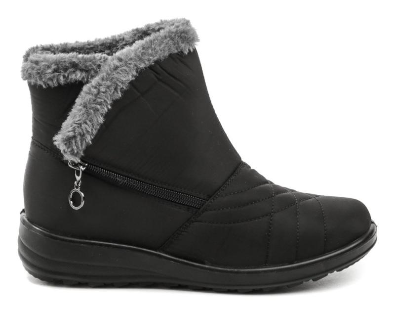 Dámská zimní vycházková kotníčková obuv se zapínáním zip.Obuv je vyrobena z textilního materiálu. Vnitřní část obuvi je vybavena chlupatým textilním kožíškem..