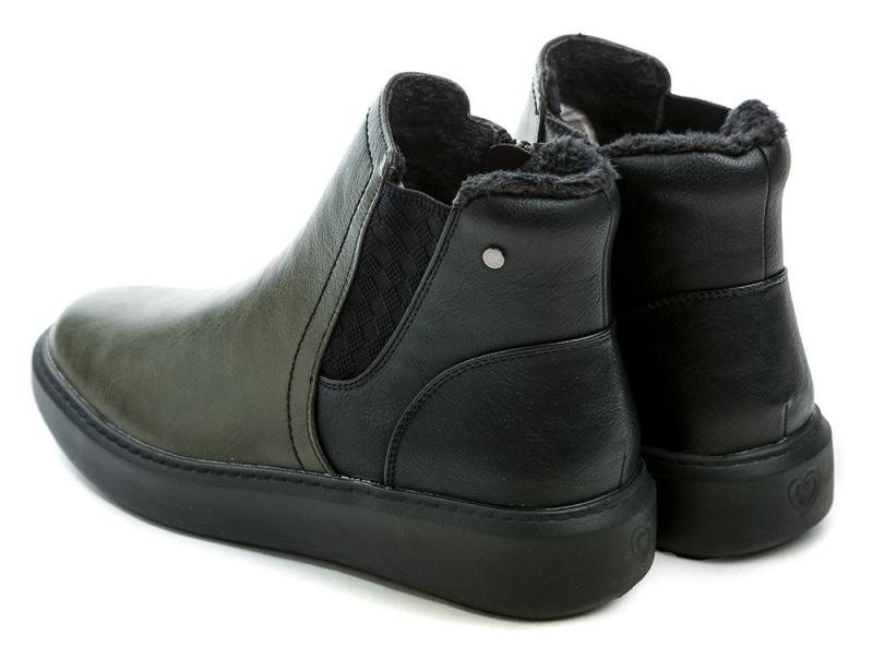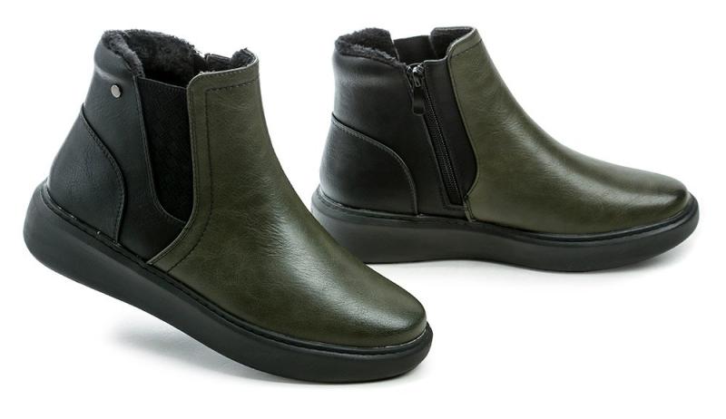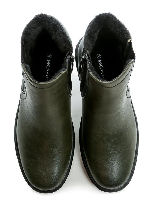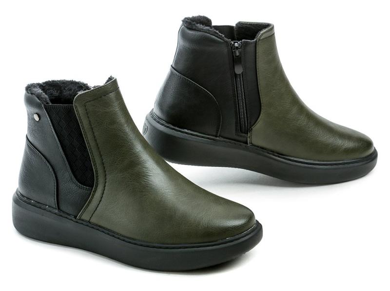 Lehké dámské zimní boty v olivové barvě s textilní podšívkou a praktickým zapínáním na dva zipy pro snadné obouvání a pohodlí během chladných dnů. zobrazit celý popis