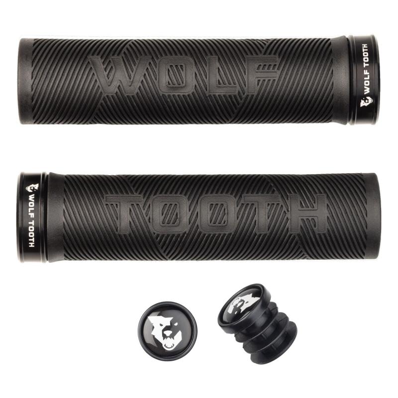 Gumový materiál je měkký a lepkavý na dotek, zatímco střídavý diagonální vzor rukojeti udržuje ruku jezdce na místě s rukavicemi i bez nich za jakýchkoli podmínek. Gripy jsou vyrobeny z černé lisované pryže a dodávají se s eloxovanými hliníkovými koncovkami, které odpovídají osmi základním barvám ostatních eloxovaných komponentů a doplňků Wolf Tooth.