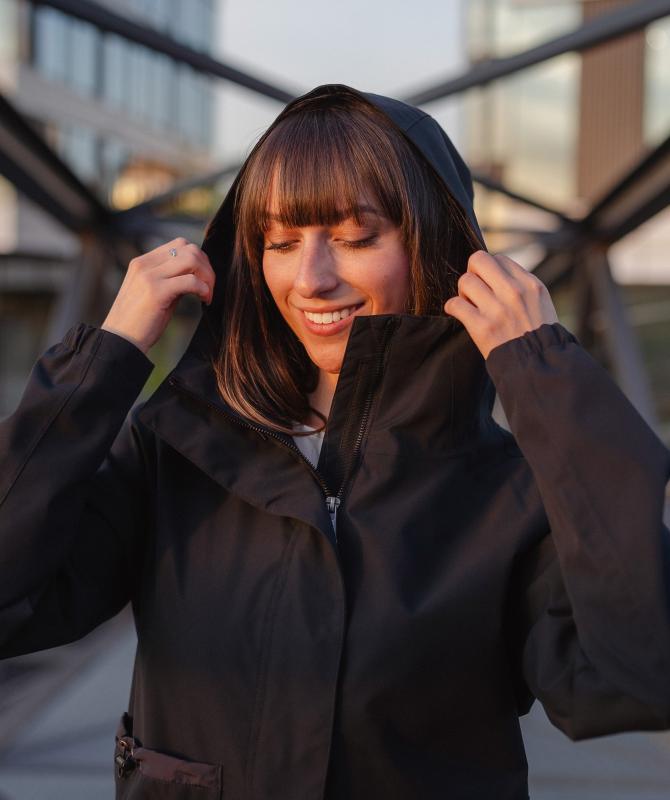 Součástí je také nastavitelná kapuce, která poskytne dodatečnou ochranu hlavy a krku při nepříznivém počasí.