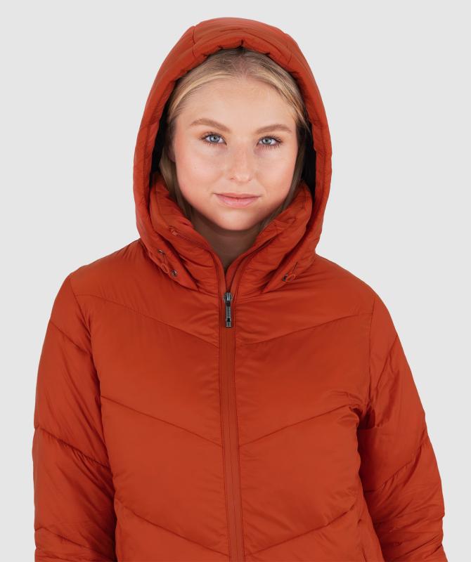 Ať už vyrážíte do města nebo do lesa, v zimním prošívaném kabátu z recyklovaných materiálů vám bude fajn. Je lehoučký a přitom teplý. Dlouhatánský až pod kolena, ale díky bočnímu rozparku na druky se nepřerazíte o první obrubník. A šetrnou voděodolnou úpravu bez škodlivých látek příroda ocení tím, že vám ukáže nějaký svůj trik. Třeba duhu.