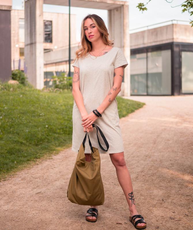 Řeklo by se - pytel. Na tenhle se ale nebudete moct vynadívat. Raději si kupte tři - jeden na nošení, druhý na zeď a třetí místo televize, ať ho máte pořád na očích.- bezpečná vnitřní kapsa na kovový zip