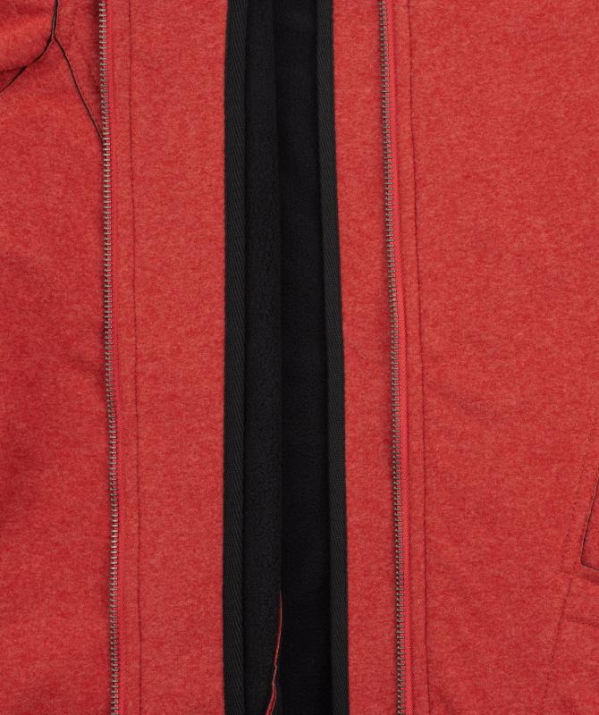 50% recyklovaný polyester, 50% polyester, třívrstvý, pružný materiál s membránou a vnitřním fleecem, vodní sloupec 10 000mm, paropropustnost 5 000g/m2/24h, ocelový hlavní zip