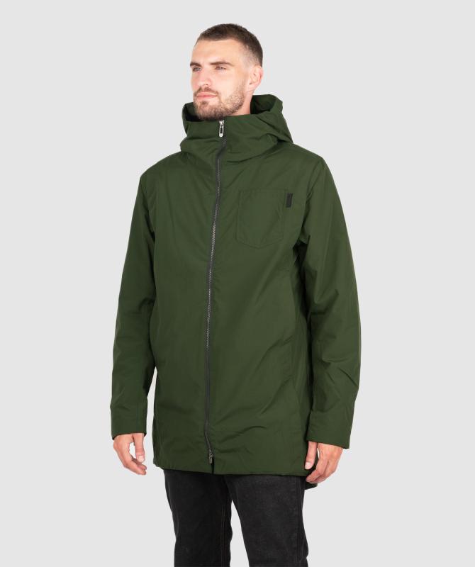 Funkční materiál z recyklovaného 100% polyesteru, voděodolnost 8000mm, paropropustnost 3000g/m2/24h, voděodpudivá povrchová úprava - DWR PFCfree, bunda je zateplená výplní Dupont Sorona 120g tělo, 80g rukávy, wooxusní strečová podšívka z recyklovaného polyesteru, hlavní ocelový dvoucestný zip, dvě hlavní kapsy zapínané na zip se dvěma protichůdými jezdci, vnější našitá náprsní kapsa, vnitřní uzaviratelná kapsa na zip, nastavitelná kapuce, nastavitelný spodní lem rukávů pomocí zipu, tvarovaný spodní okraj, podlepené švy na ramenou a rukávech pro vyšší funkčnost.