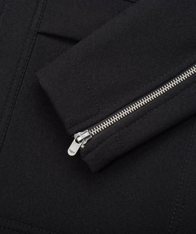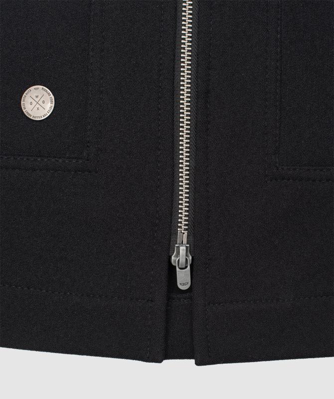 100% polyester, třívrstvý, stretchový materiál s membránou a vnitřním fleecem, vodní sloupec 10 000mm, paropropustnost 5 000g/m2/24h, ocelové zipy, hlavní dvoucestný, rozparky na zip u rukávů, skvěle padnoucí wooxusní střih. Made in EU.