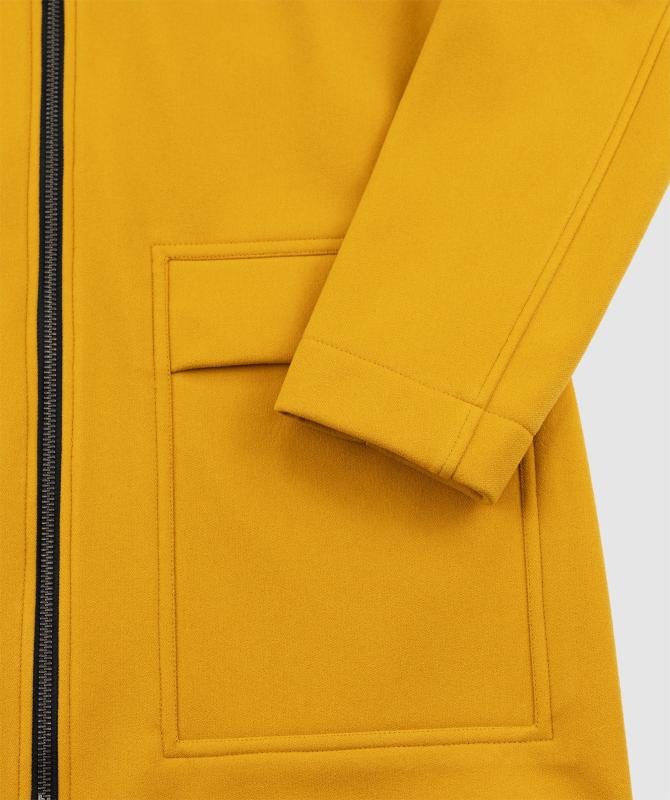 100% polyester, trojvrstvový, stretchový materiál s membránou a vnútorným fleesom, vodný stĺpec 10 000mm, paropriepustnosť 5 000g/m2/24h, oceľové zipsy, hlavný obojsmerný, skvele padnúci wooxusný strih. Made in EU.