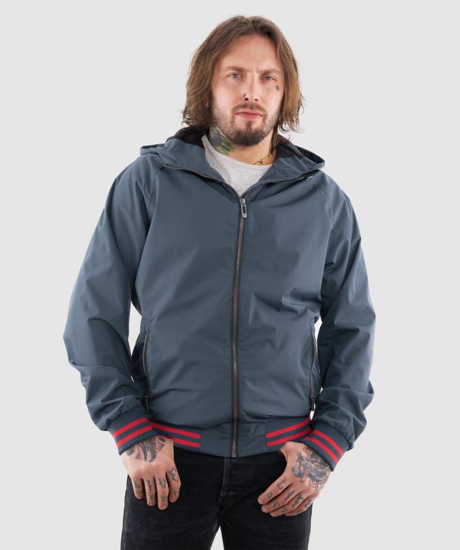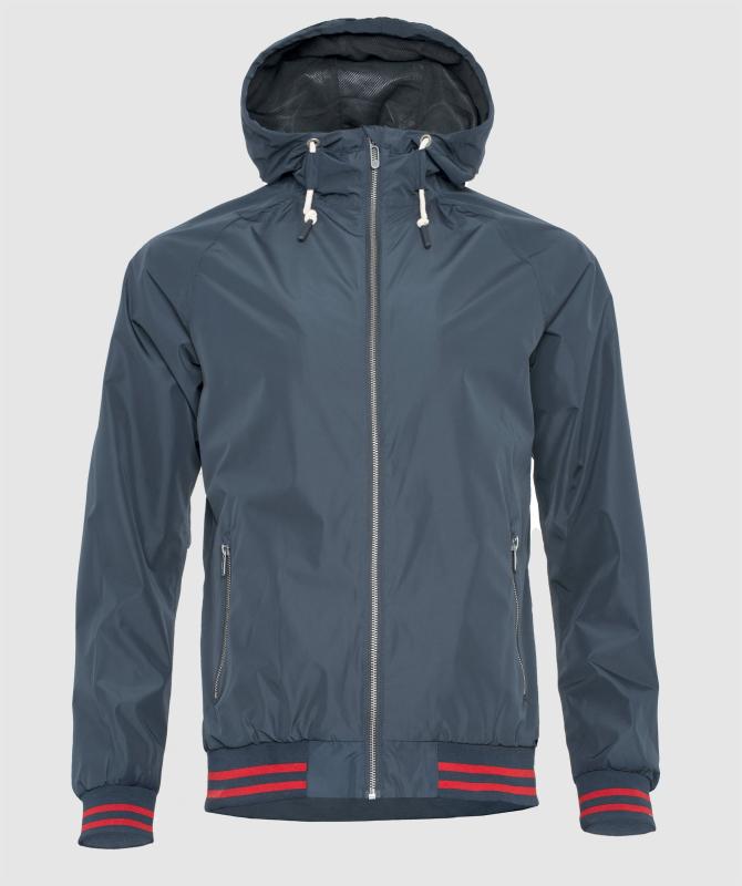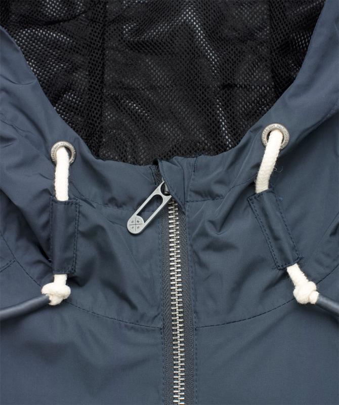 100% recyklovaný polyester, voděodolnost 8000mm, paropropustnost 5000g/m2/24h, podlepené švy, dvě uzaviratelné boční kapsy s ocelovými zipy, síťovaná podšívka, stahovací kapuce.