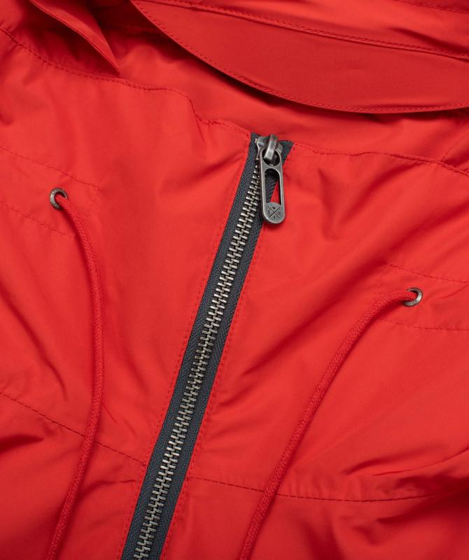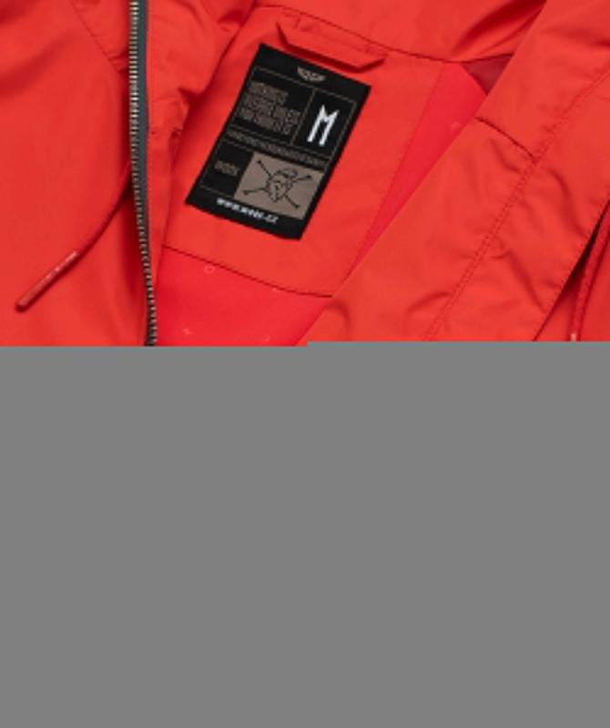 100% polyester, hlavný kovový zips, hlavné vrecká na kovový zips, podlepené švy, wooxusná pružná podšívka, vnútorné uzatvárateľné vrecko na zips, sťahovacia kapucňa s šiltom, rukávy sú ukončené stiahnutím do gumy, membrána 8000mm/3000gm24h, funkčná ventilácia na zadnom diely, do spodnej strany je všitý silikónový prúžok.