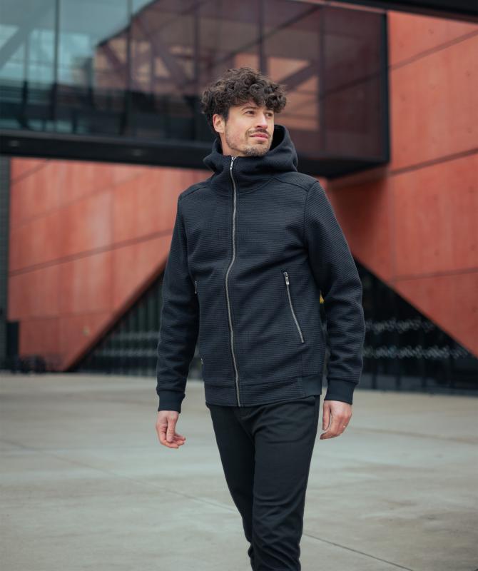 Tahle fešácká bunda má membránu. Fakt. Pokud máte za to, že v softshellu chodí jenom chlápci nakupující v horolezeckých speciálkách, chyba lávky. Páč v téhle budete vypadat výborně i na té Novotného, případně v přilehlém klubu. Až zjistíte, že tam žádné štěstí neuděláte, běžte rovnou do lesa, bez převlíkání.