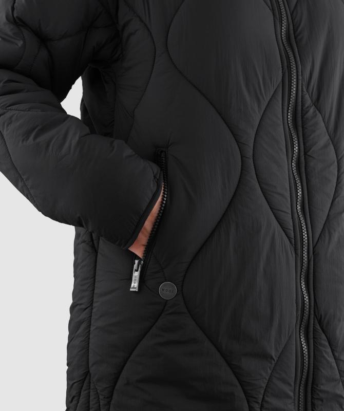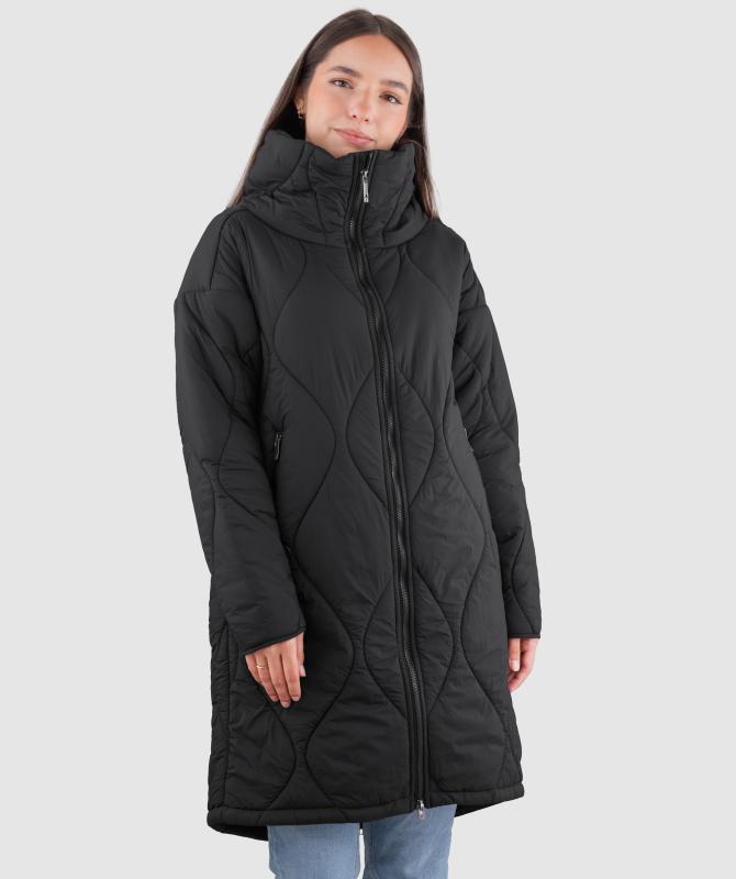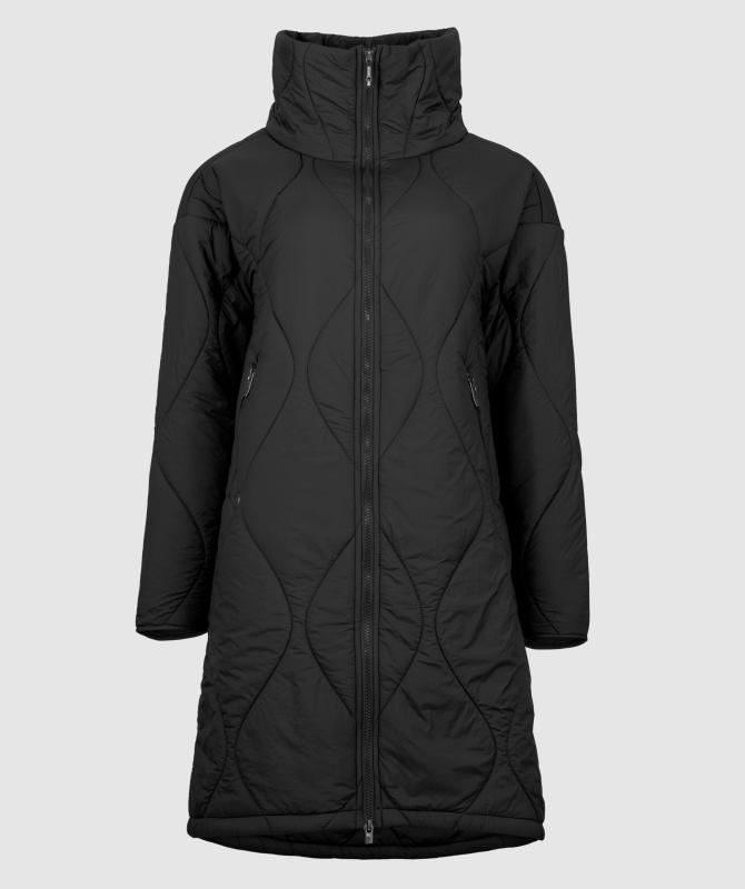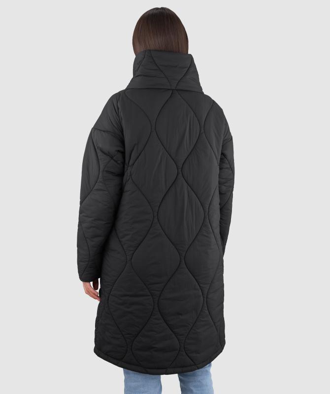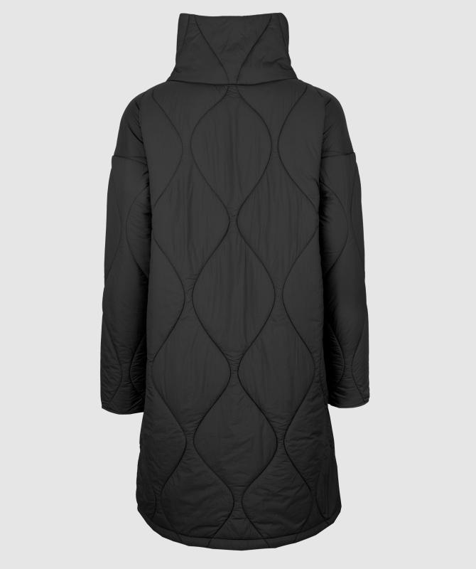 Prošívaný kabát s originálním vzorem má volnější střih, který umožňuje pohodlné vrstvení oblečení pod kabát. Vysoký a široký stojací límec poskytuje spolehlivou ochranu proti chladu a větru.