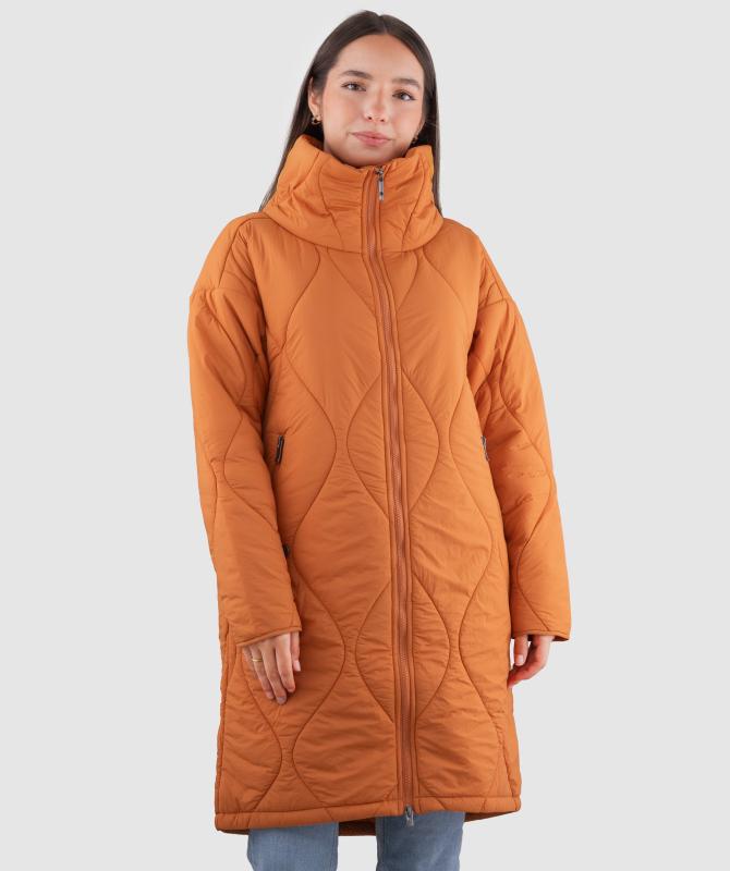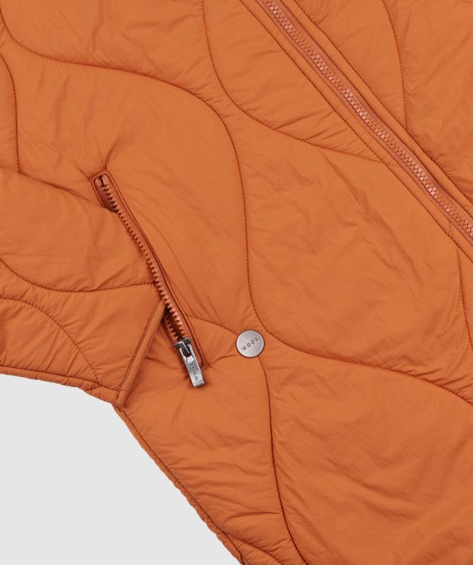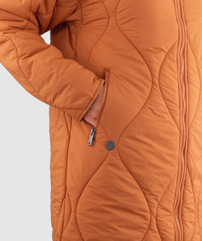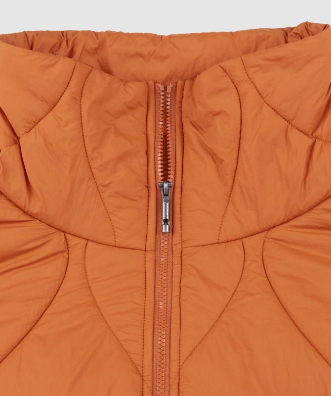 Výplň tvoří recyklovaný polyester, který poskytuje dostatečné hřejivé vlastnosti a zároveň je šetrný k životnímu prostředí. Prošívaný design s originálním vzorem dodává kabátu moderní vzhled a zároveň pomáhá udržet výplň rovnoměrně rozloženou.