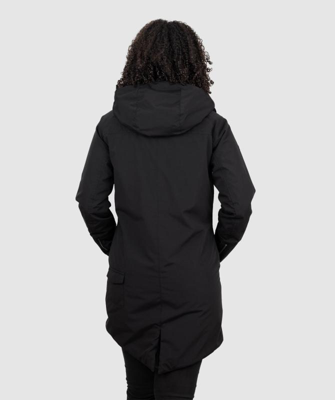 100% recyklovaný polyester, zateplení Sorona tělo 120g/m2, rukávy kapuce 80g/m2, voděodolnost 8000mm, paropropustnost 5000g/m2/24h, rozparky na zip u rukávů, vnitřní kapsa uzaviratelná na zip, stahovatelná a nastavitelná kapuce, hlavní kovový dvoucestný zip, dvě náprsní kapsy uzaviratelné na druk, hlavní kapsy se zipem, stahovatelný spodní lem, otevřený rozparek v zadním díle, podlepené švy na ramenou a rukávech, wooxusní strečová podšívka, v zadním díle kapsa na druk.