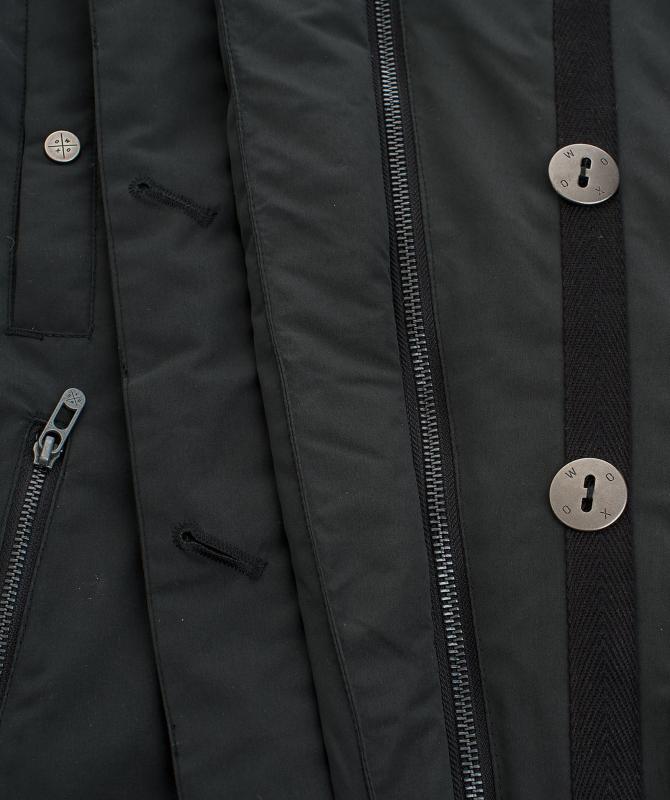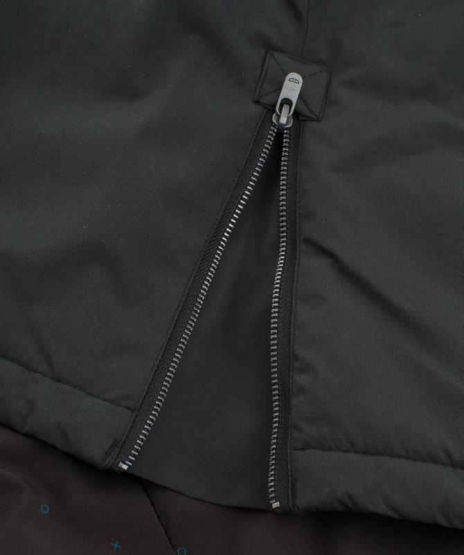 100% polyester, vodeodolnosť 8000mm, paropriepustnosť 3000g/m2/24h, zateplenie polyfill - telo 120g/m2, rukáv a kapucňa 80g/m2, podlepené švy, nastaviteľná a odnímateľná kapucňa, odnímateľný aj kožúšok kapucne, vnútorná uzatvárateľná kapsa na zips, oceľové zipsy, nastaviteľné rukávy na zips, ramenná kapsička na druk, rozopínacie rozparky na bokoch.