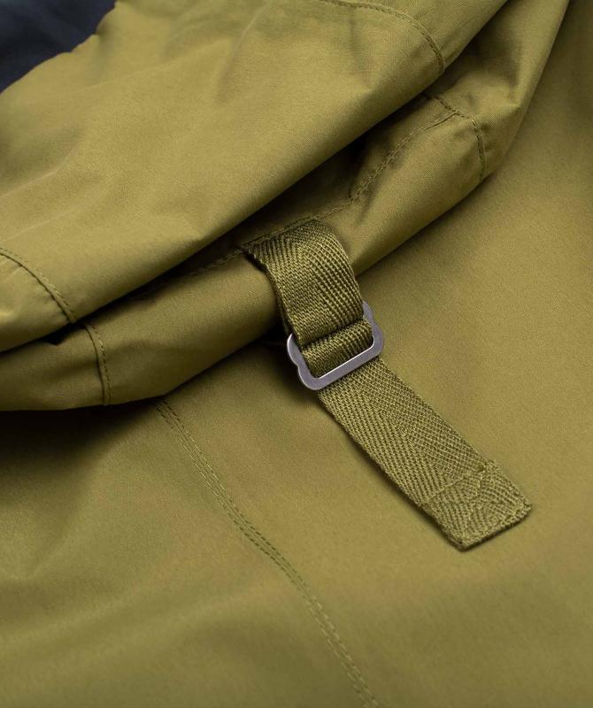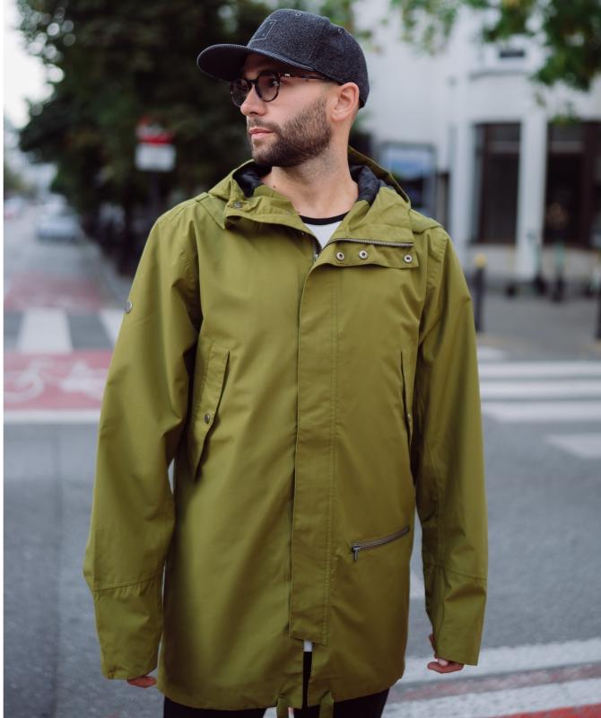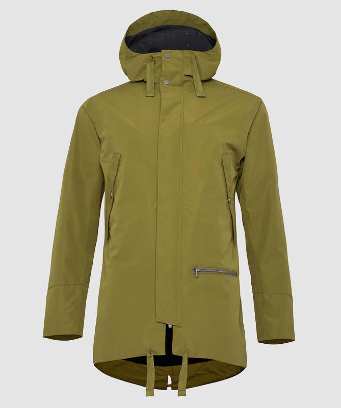 100% recyklovaný polyester, voděodolnost 8000mm, paropropustnost 3000g/m2/24, větrací lem na zadní straně, hlavní ocelový zip, hlavní kapsa na zip, podlepené švy, dvě uzaviratelné boční kapsy na druky, vnitřní uzaviratelná kapsa na zip, wooxusní podšívka, nastavitelná stahovací kapuce, rozparek na zadní straně, rozepínání a nastavení šířky rukávů na zip.