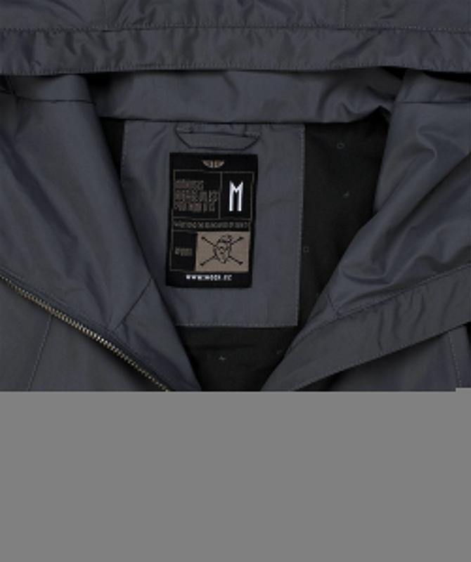 100% polyester, hlavný kovový zips, podlepené švy, dve uzatvárateľné bočné vrecká na zips, vnútorné uzatvárateľné vrecko na zips, wooxusná podšívka, vodeodolnosť 8000mm, paropriepustnosť 3000g/m2/24h.