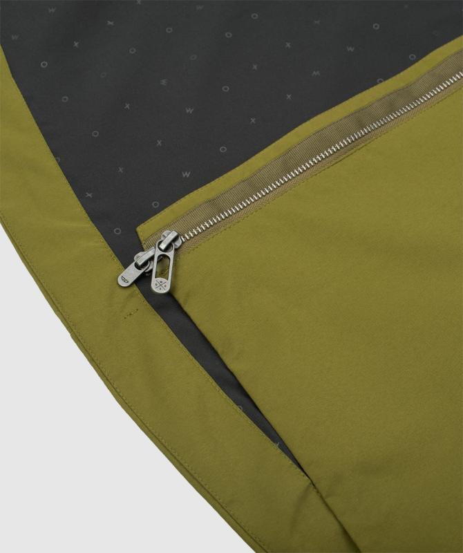 100% recyklovaný polyester, obojsmerný kovový zips, hlavné vrecká na kovový zips, podlepené švy, wooxusná pružná podšívka z recyklovaného materiálu, vnútorné uzatvárateľné vrecko na zips, sťahovacia kapucňa, sťahovanie na rukávoch, membrána 8000mm/3000gm24h.