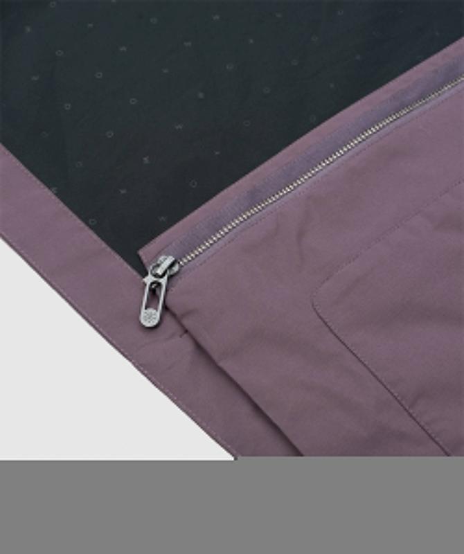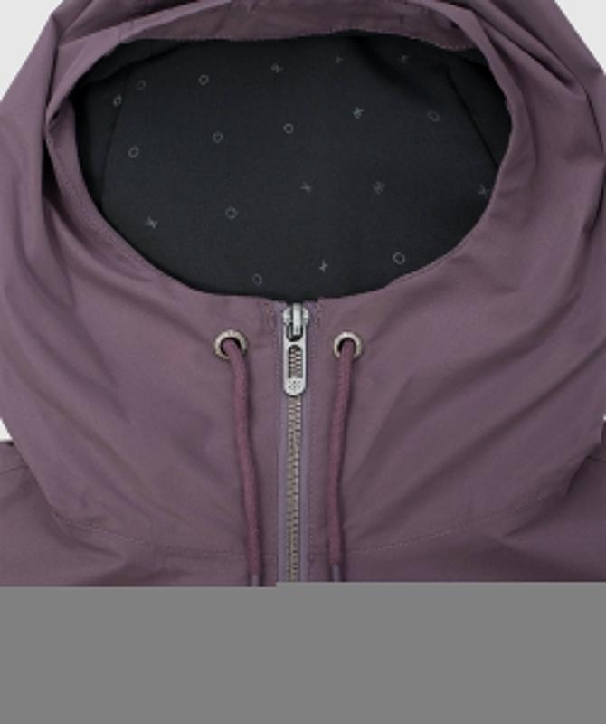 100% polyester, vodeodolnosť 8000mm, paropriepustnosť 3000g/m2/24h, hlavný kovový zips, nákladané dve uzatvárateľné bočné vrecká na zips, podlepené švy, vnútorné uzatvárateľné vrecko na zips, wooxusná pružná podšívka, sťahovacia kapucňa, funkčná ventilácia na zadnom diely.