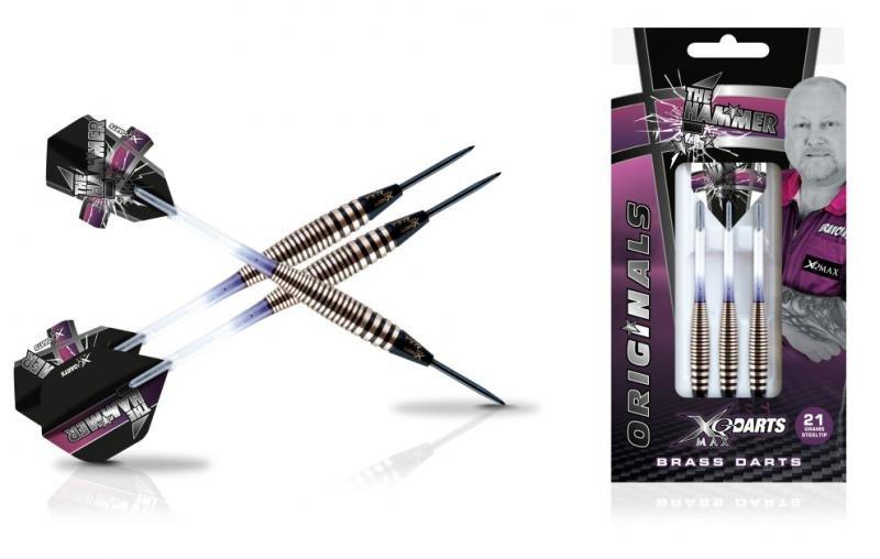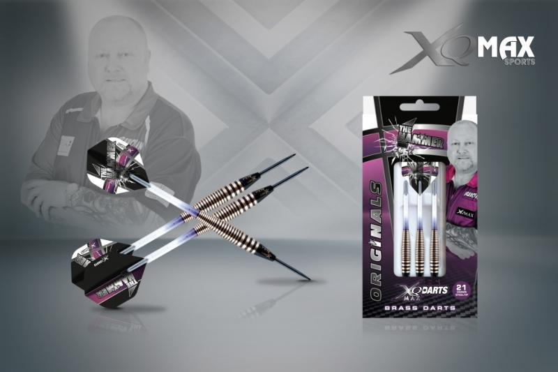 Steelové mosadzné šípky Andy Hamilton s čierno-striebornými mosadznými barrelmi s logom XQMax Darts a podpisom Andy Hamiltona, nylonovými násadkami a letkami The Hammer. Zobrazit celý popis